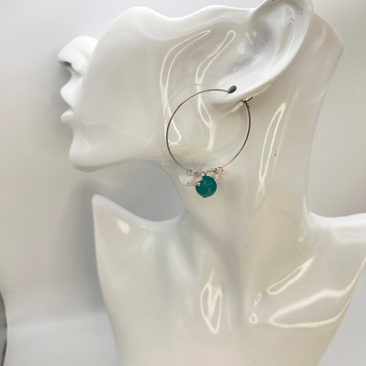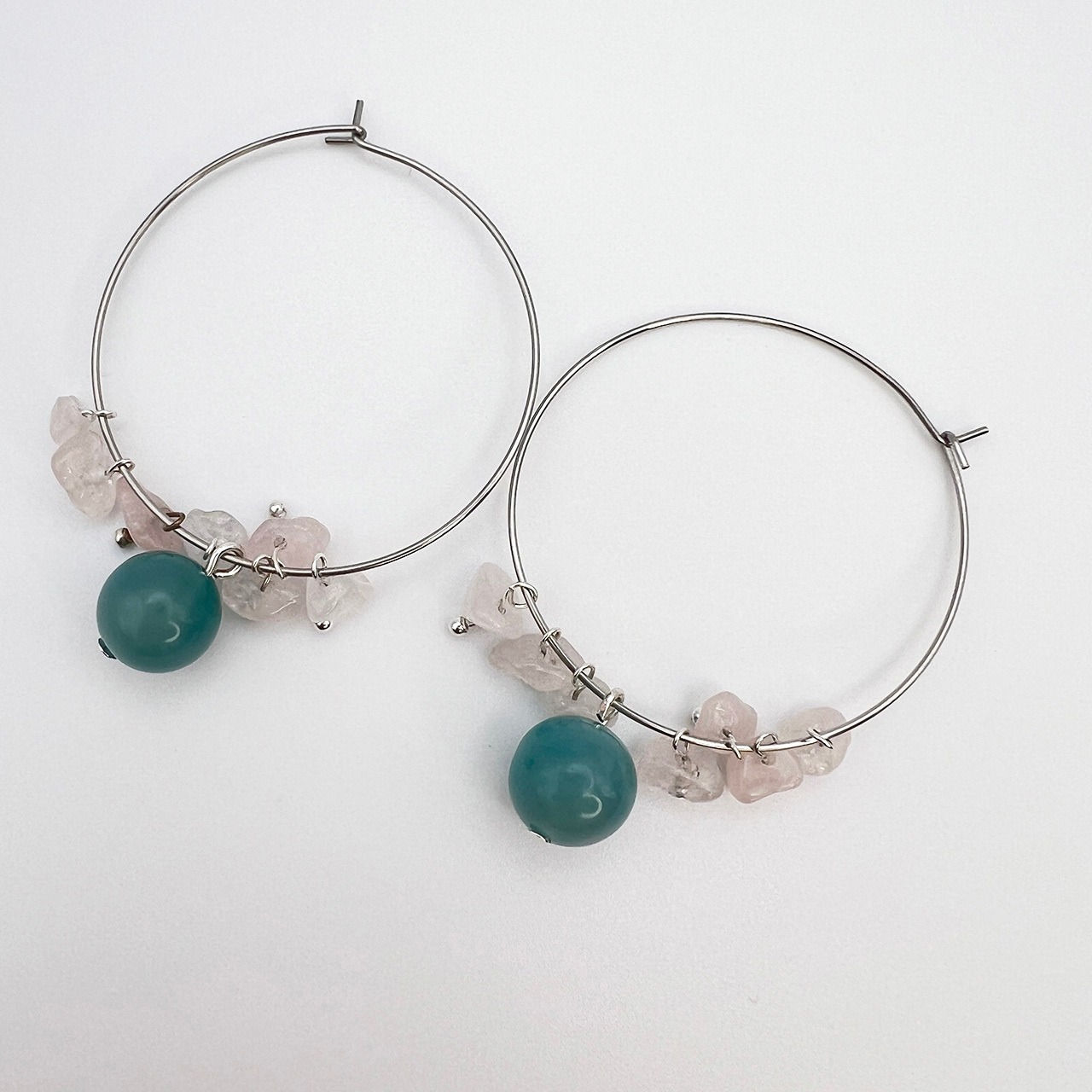 アマゾナイト×ローズクウォーツデザインピアス