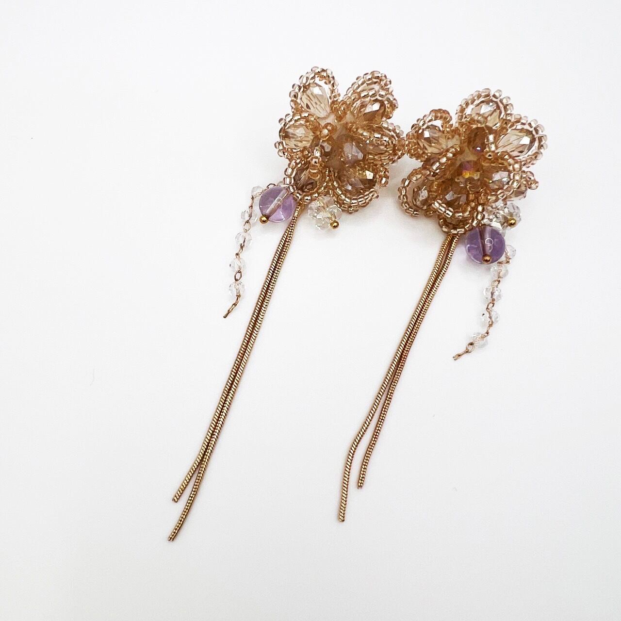 ラベンダーアメジスト×水晶デザインピアス