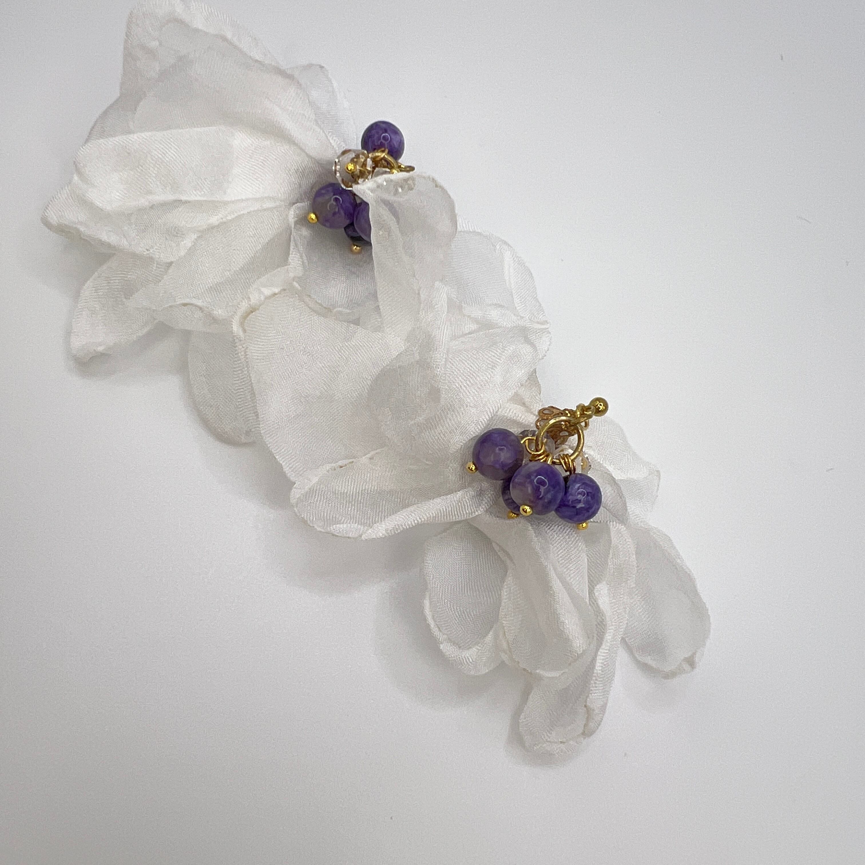 チャロアイト×水晶デザインピアス