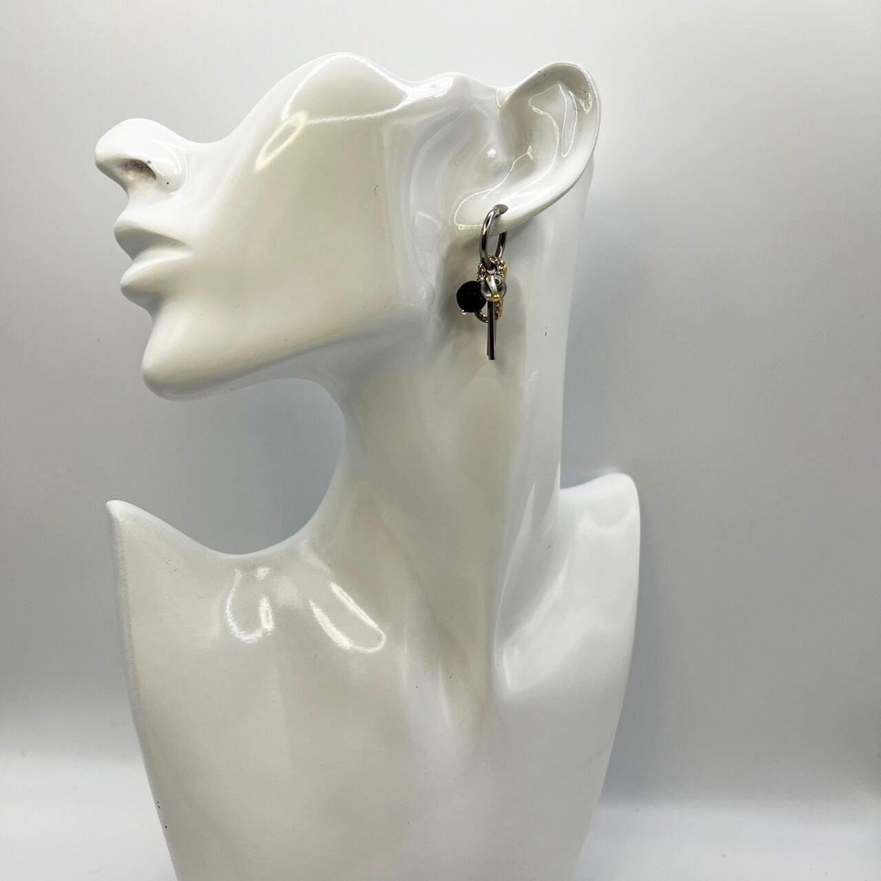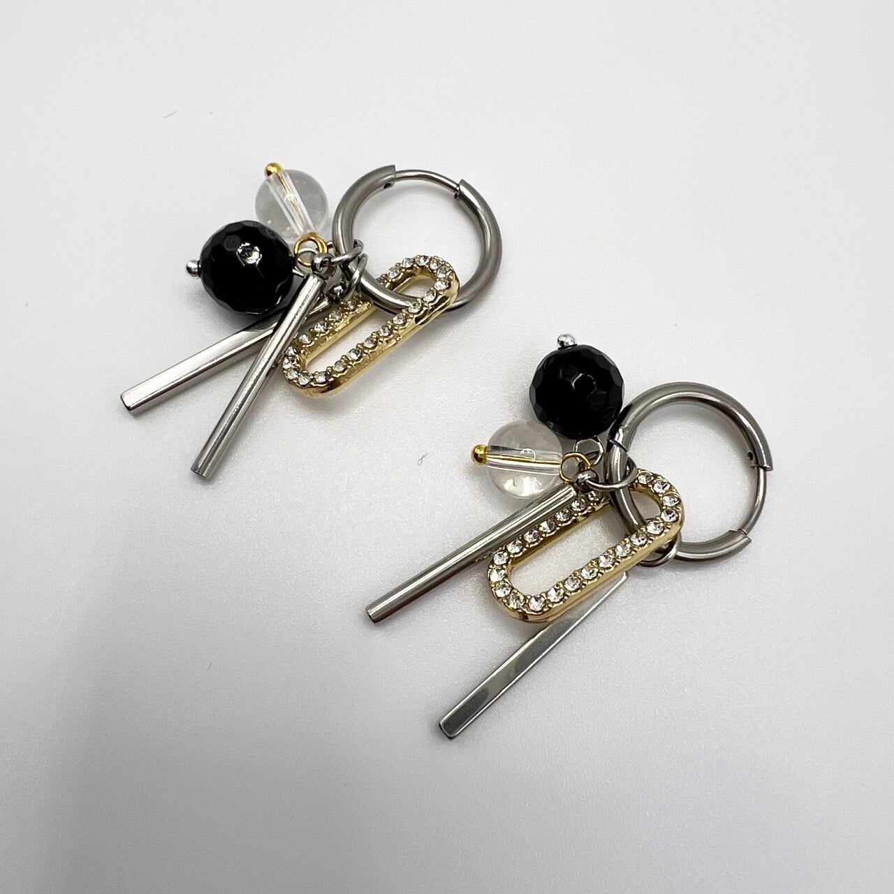 オニキス×水晶 ピアス